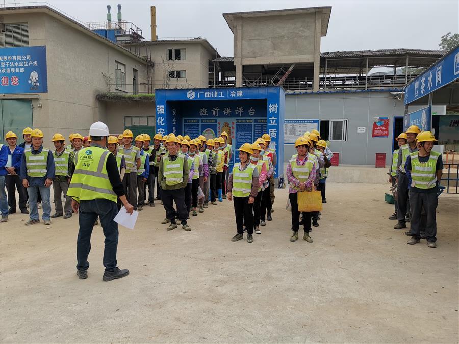“作業(yè)人員進入施工現(xiàn)場必須正確佩戴安全帽……”。在魚峰水泥技改項目施工現(xiàn)場,這樣手持小喇叭的安全員隨處可見,他們時刻為施工人員宣傳安全知識,為項目安全生產(chǎn)保駕護航。