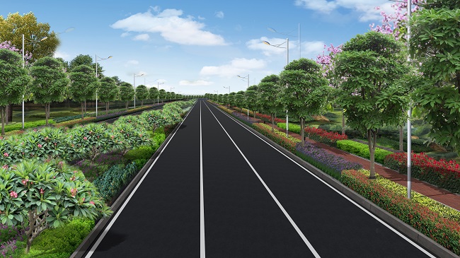 該項目位于田東縣濱江新區(qū)右江左岸,設(shè)計等級為城市次干路,設(shè)計速度40km/h,標準路幅寬40米,主干道路長約2084米,A、B、C、D四條匝道長約898米,主要建設(shè)道路工程、交通工程、巖土工程、排水工程、照明工程、景觀及綠化工程等,計劃總工期為365天。