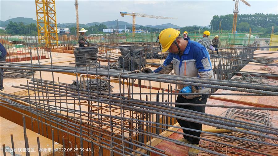為了確保按時(shí)間節(jié)點(diǎn)完成工作量,項(xiàng)目部想方設(shè)法克服各種困難,在做好疫情防控及防暑降溫保障措施工作的同時(shí),認(rèn)真抓好施工現(xiàn)場(chǎng)的安全和質(zhì)量管理工作。當(dāng)前,項(xiàng)目每天有200多人的鋼筋班組、木工班組、外架班組、滿(mǎn)堂架班組和混凝土班組在現(xiàn)場(chǎng)有序進(jìn)行安裝模板、搭設(shè)支架、綁扎鋼筋等工作。