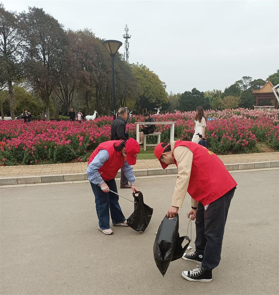 活動中,大家分工明確、各司其責(zé),細致耐心地撿拾草坪和道路上的果皮紙屑、包裝袋等垃圾,并將垃圾分類,維護公園干凈整潔的衛(wèi)生環(huán)境。