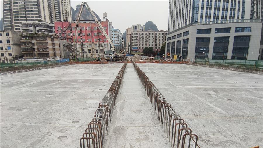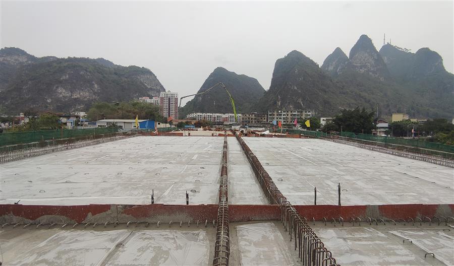 4月3日,冶建公司桂金分公司承建的河池市龍江六橋(輝樂橋)工程順利完成拱上箱梁結(jié)構(gòu)頂板混凝土澆筑施工任務(wù),主體橋面實現(xiàn)全幅貫通。
