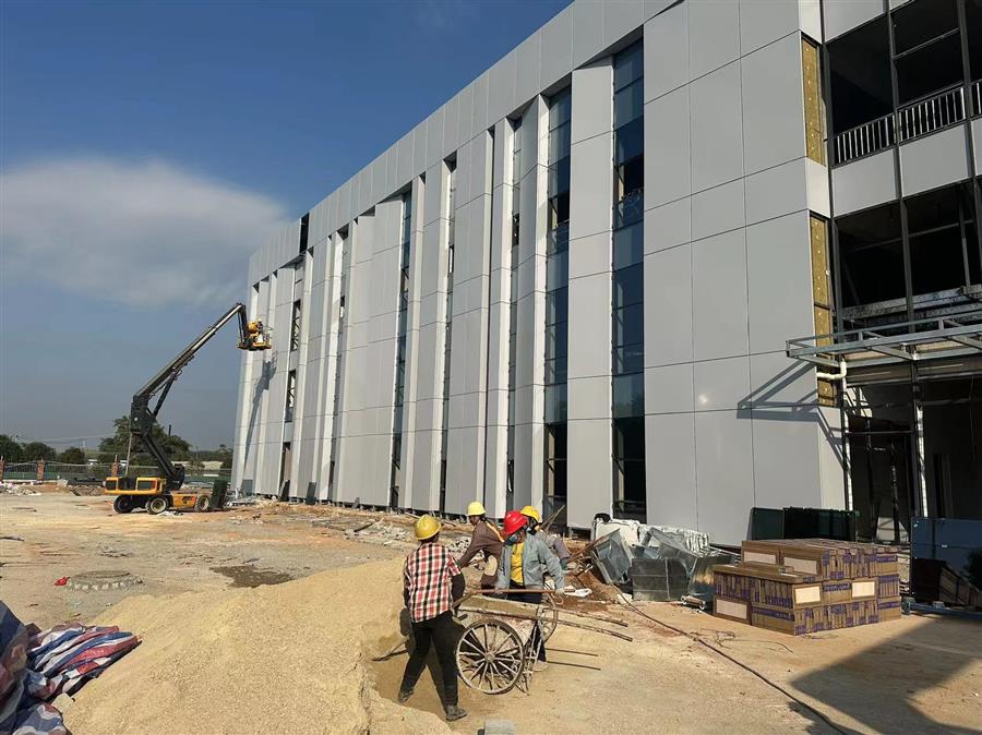 目前,項目1#聯(lián)合廠房外立面均已完成,室內(nèi)消防、鋼結構等均已安裝完畢,暖通以及水電工程、室內(nèi)燈具、器具等正在安裝中。庫房、門衛(wèi)室主體結構已完成、室內(nèi)燈具、器具等正在安裝中。