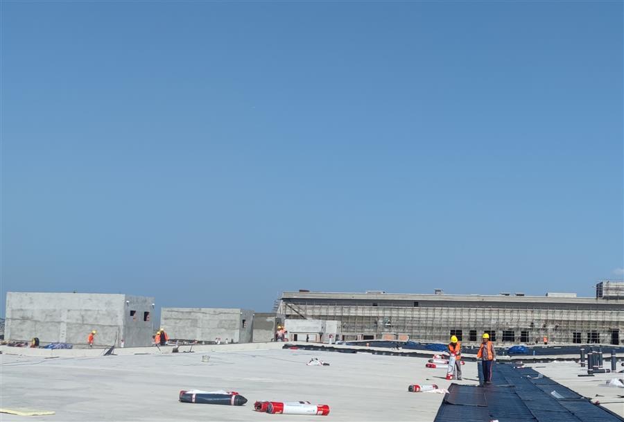 走進50Gwh鋰電池產業(yè)基地(新能源電池標準化廠房)一期項目施工現場,機器轟鳴,工程車來回穿梭,施工人員忙碌作業(yè),水電消防安裝、屋面防水卷材鋪貼、內外墻抹灰、門窗窗框安裝、抗裂砂漿和室外管網路基施工等工作緊張有序地進行中。為應對項目體量大、工期緊的情況,項目部緊扣節(jié)點目標掛圖作戰(zhàn),逐項細化分解工程量,量化任務清單,制定日工作進度表,錨定目標精準發(fā)力,做到畫“圖”定責、按“圖”推進、看“圖”指揮,實現以日保周、以周保月、以月保季,確保了目標任務按序按時推進,曾以不到5個月的時間實現了項目包含的15個單體工程全面封頂。