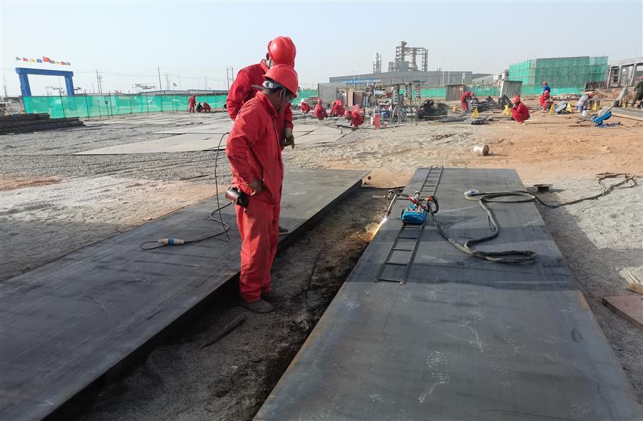 為了保障工程進度,在確保安全和質(zhì)量的前提下,建設(shè)者們?nèi)找箠^戰(zhàn)在項目工地,全力加快項目建設(shè)。目前,項目整體進度完成55%,廠房配套臨建主體設(shè)施完成65%,1500方儲油罐體焊接已完成10個,完成項目整體罐體焊接55%。剩余工藝管道配套管網(wǎng)正在場外工廠緊鑼密鼓地進行生產(chǎn)加工,隨后運到廠區(qū)進行拼接組裝。