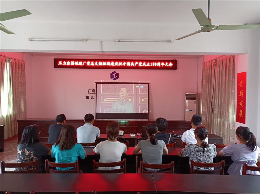 公司黨委組織員工收看慶祝中國(guó)共產(chǎn)黨成立100周年大會(huì)直播。公司領(lǐng)導(dǎo)班子成員覃振華、蒙勝益、賴(lài)海標(biāo)、廖立波、唐峰、阮仁勝、周善學(xué)、何勇,代財(cái)務(wù)總監(jiān)李芝霞,副調(diào)研員劉國(guó)江以及各基層黨組織黨員以集中或個(gè)人收看方式觀(guān)看大會(huì)直播。