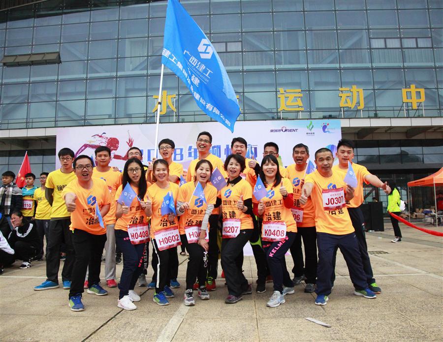 跑進(jìn)2018,沖向勝利目標(biāo)!60年鐵軍精神,看冶建崢嶸出擊!2018年1月1日,在公司工會(huì)的組織下,我司職工統(tǒng)一身著明黃色上衣,揮舞著冶建旗幟,雄赳赳氣昂昂來(lái)到柳州市靜蘭水上運(yùn)動(dòng)中心參加2018柳州市“邁向新年7+3”奔跑活動(dòng)暨2018年全市元旦長(zhǎng)跑比賽。
