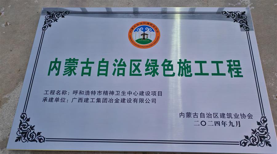 內(nèi)蒙古自治區(qū)綠色施工工程牌匾