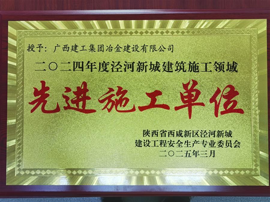 近日,冶建公司基礎(chǔ)分公司承建的一項目在陜西省西咸新區(qū)2024年度建筑施工領(lǐng)域建設(shè)管理先進(jìn)評選中表現(xiàn)突出,榮獲“先進(jìn)施工單位”榮譽稱號。