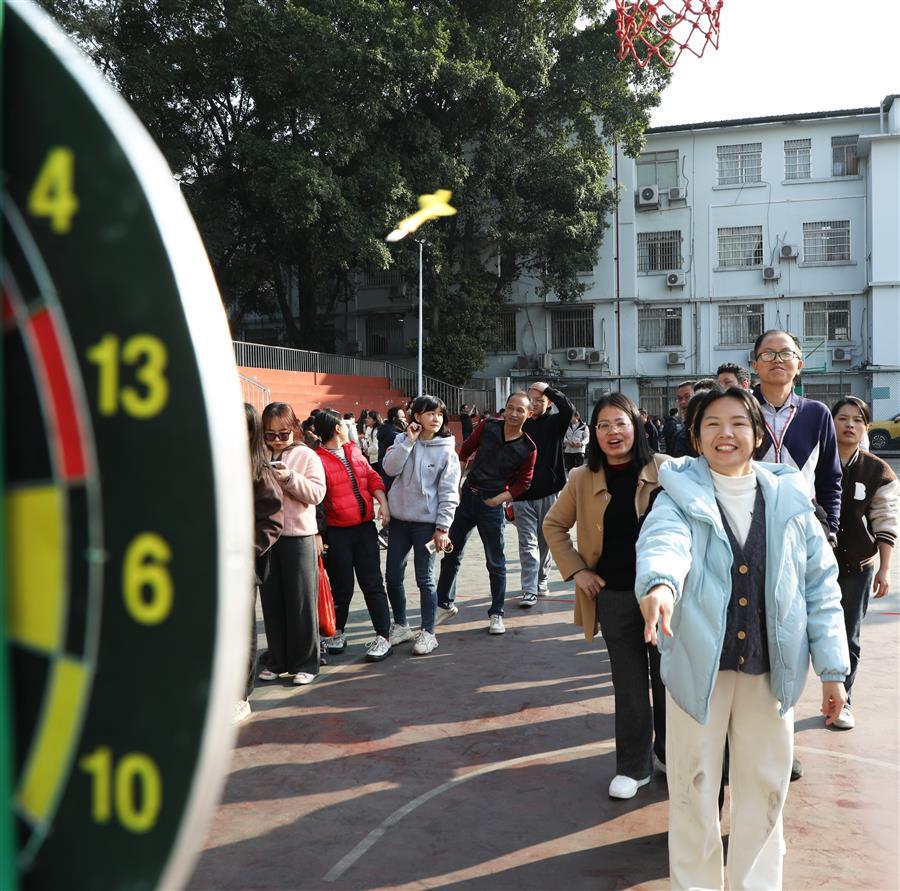 活動(dòng)現(xiàn)場處處歡聲笑語、熱鬧非凡,一派歡樂祥和的景象。在集體項(xiàng)目團(tuán)隊(duì)滾鐵環(huán)接力賽、單腿跑火車接力賽中,參與比賽的員工配合默契、銜接緊密、奮力爭先,場面激烈,觀眾的掌聲、笑聲、喝彩聲此起彼伏。游園活動(dòng)還設(shè)置擲壺、飛鏢、滾球入桶、定點(diǎn)投籃、盲人擊鼓、套活雞活鴨等8項(xiàng)個(gè)人項(xiàng)目,大家有序排隊(duì)積極參與,樂在其中,收獲滿滿,為即將到來的蛇年新春增添了滿滿的喜氣。